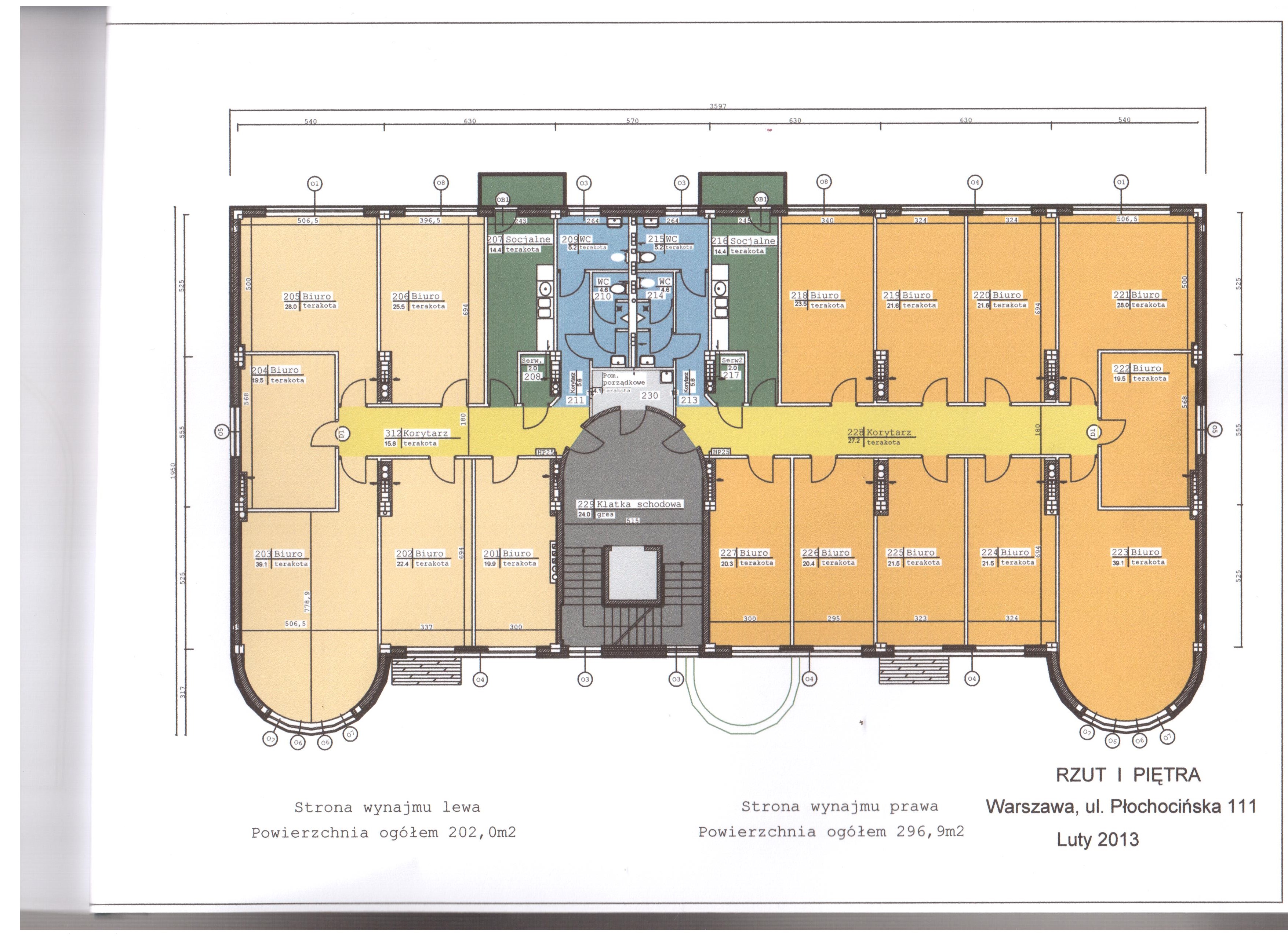 3. II piętro 498,9 m2, składające się z dwóch niezależnych części o powierzchni 202 m2 i 296,9 m2, wraz z kompleksami sanitarnymi, w których